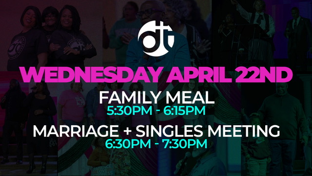 Marriage + Singles Meeting: 6:30–7:30 PM